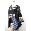 手作りショルダーバッグは会津木綿と木綿(和柄プリント)のリバーシブル仕立てで、体に斜め掛けしたりできるほか、紐を短く結んでハンドバッグとしても使えます。